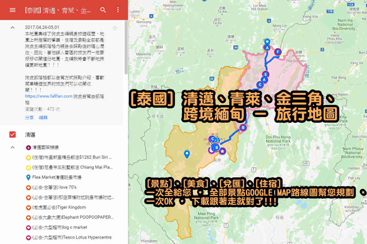 泰國( ประเทศไทย )清邁( เทศบาลนครเชียงใหม่ ) → 自駕到 → 清萊、金三角、緬甸( Semarang ) Google Maps 旅行地圖正式上線了!!!